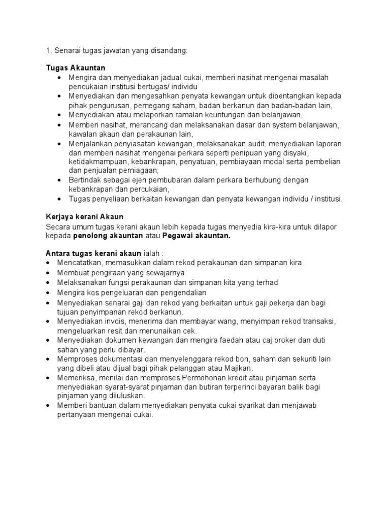 2) menutup akaun kewangan pada setiap bulan atau pada tempoh yang telah . 4, seksyen kewangan, hapisah binti yahya, ketua pembantu tadbir (kewangan). Kalau syarikat kecil mereka akan menggunakan istilah kerani akaun sahaja. Menyediakan cadangan permohonan anggaran peruntukan tahun kewangan.